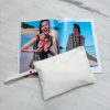 Beige Leather Clutch Bag Minimalist Wristlet Purse Women