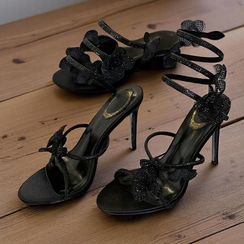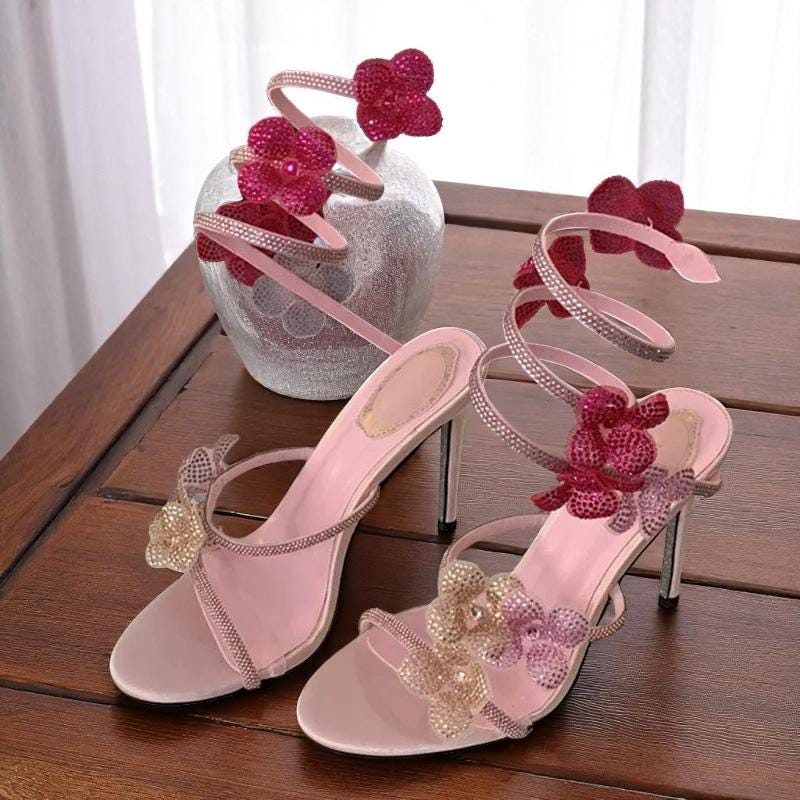 Crystal Ankle Strap Heels: Elegant Gladiator Style Open
