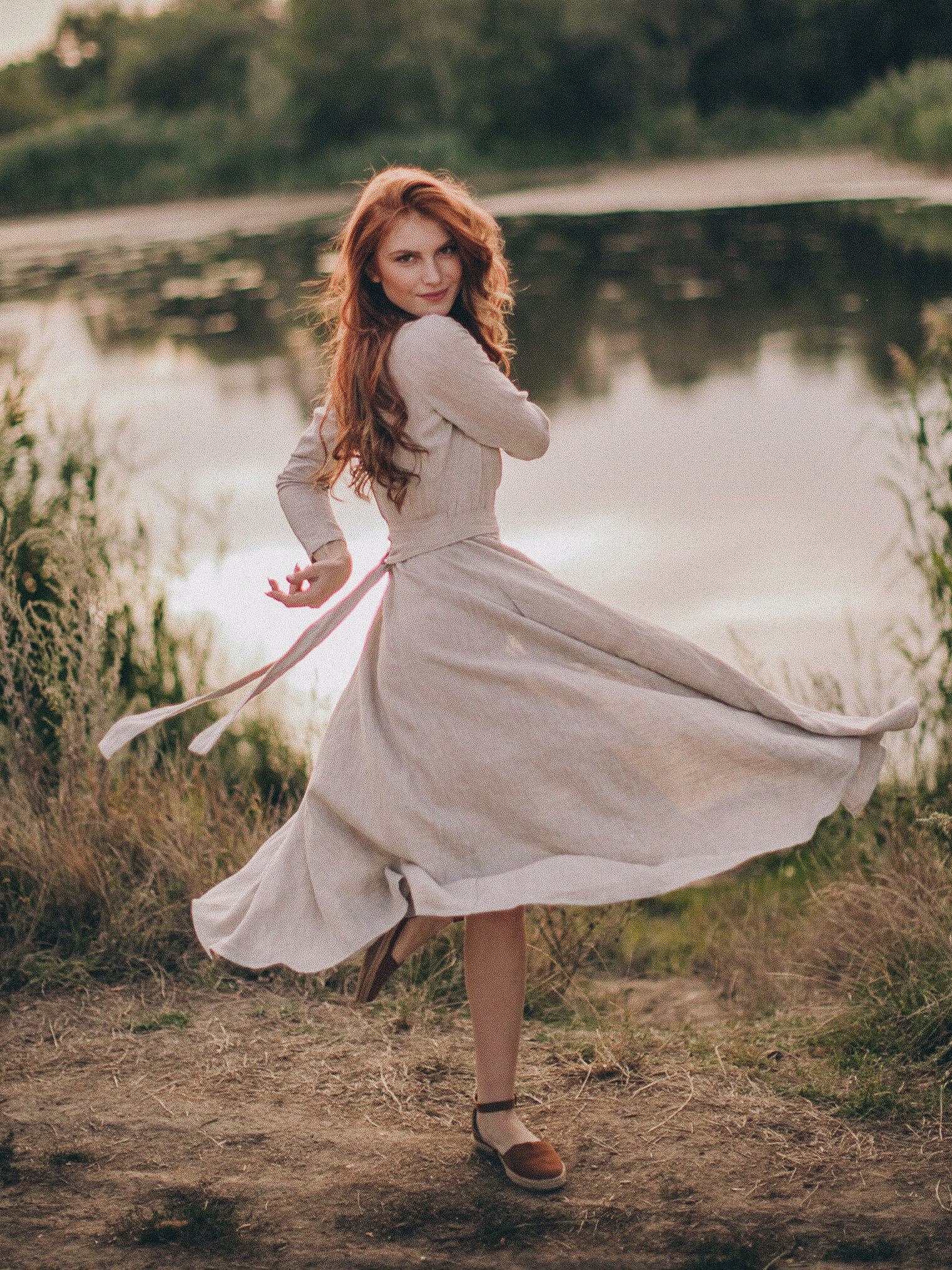 Embrace timeless style and comfort with our midi linen dress, designed for effortless elegance. Made from luxurious heavyweight linen, this dress offers a perfect balance of structure and flow. Featuring a flattering V-neck collar and a tie waist, it creates a beautiful, adjustable silhouette that suits any body shape. The midi length adds a classic touch, while the convenient side pockets make it as functional as it is stylish.