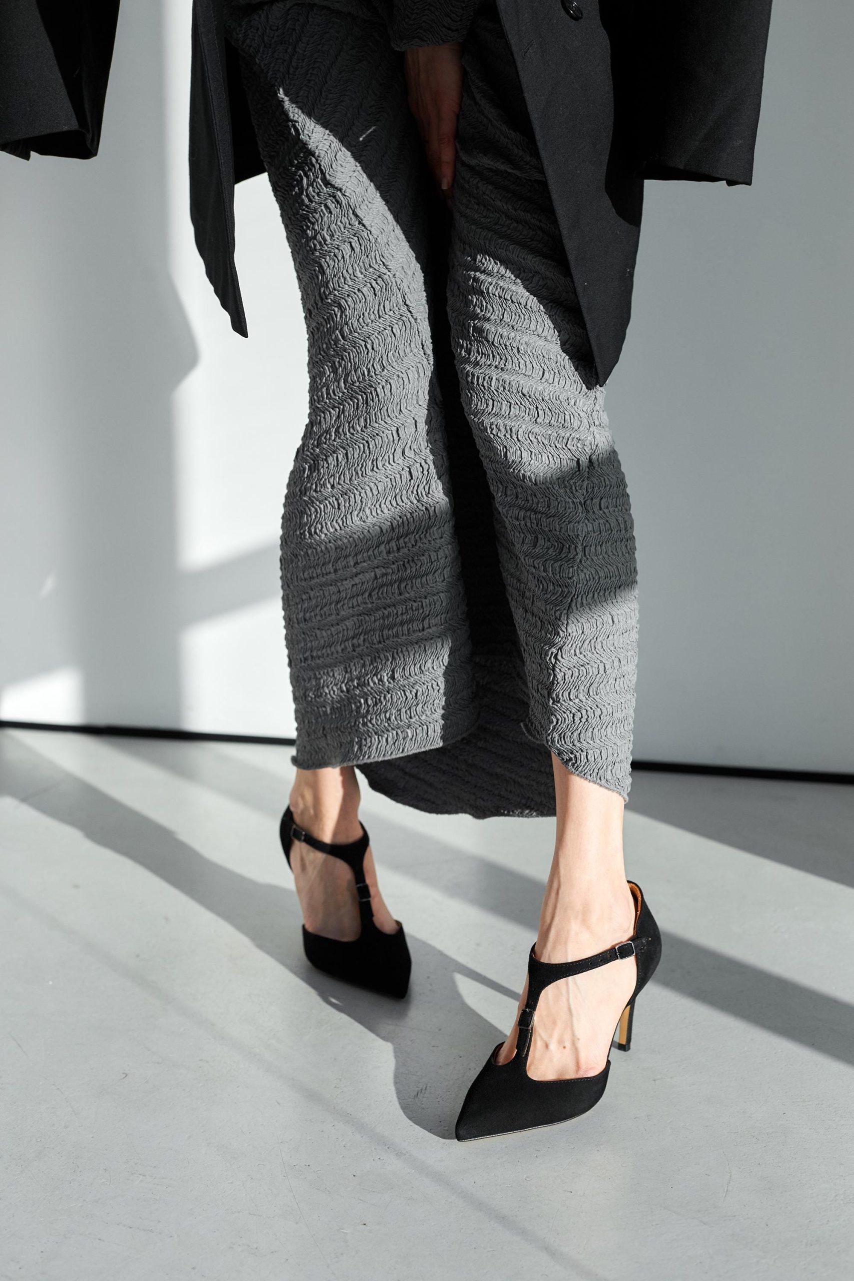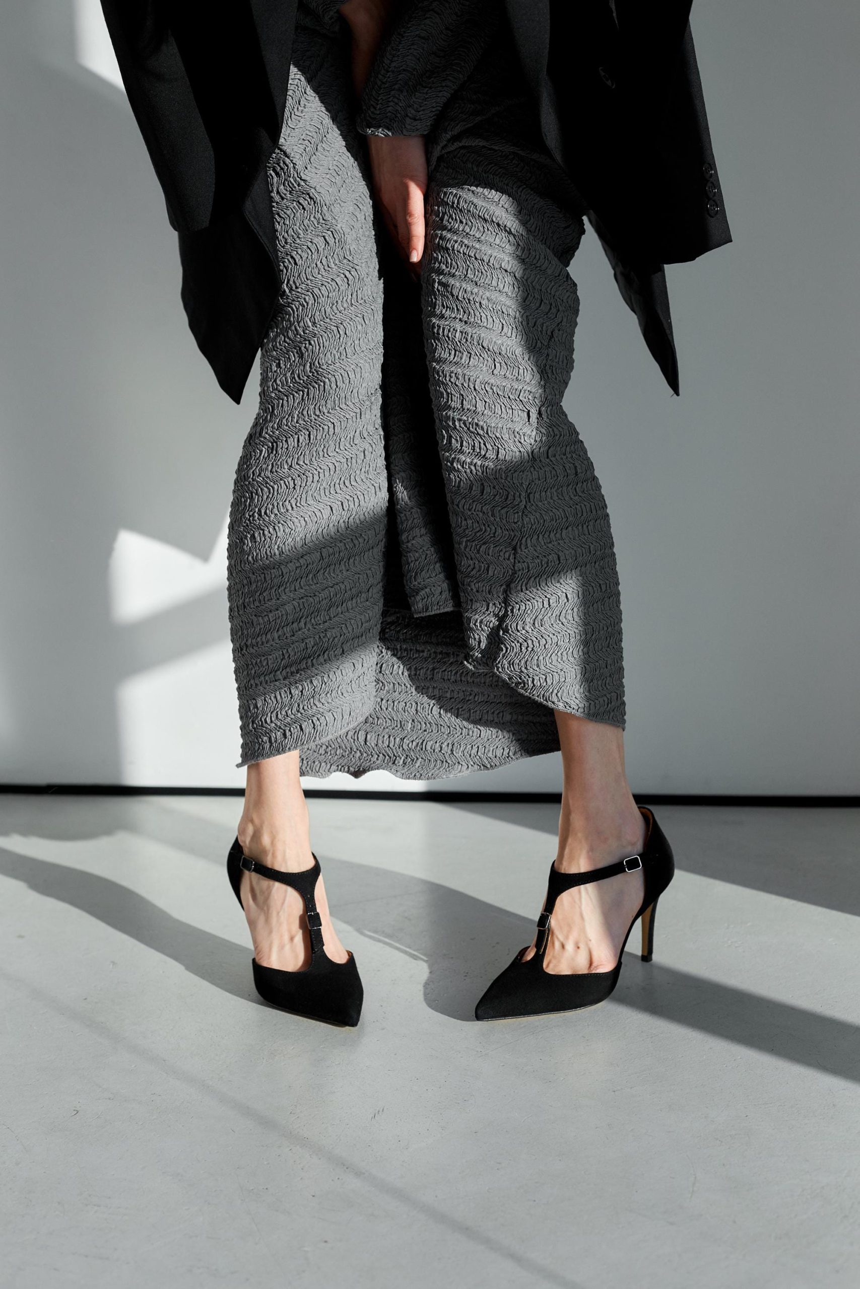 Pointed Toe Stiletto Heels Black Suede T Strap