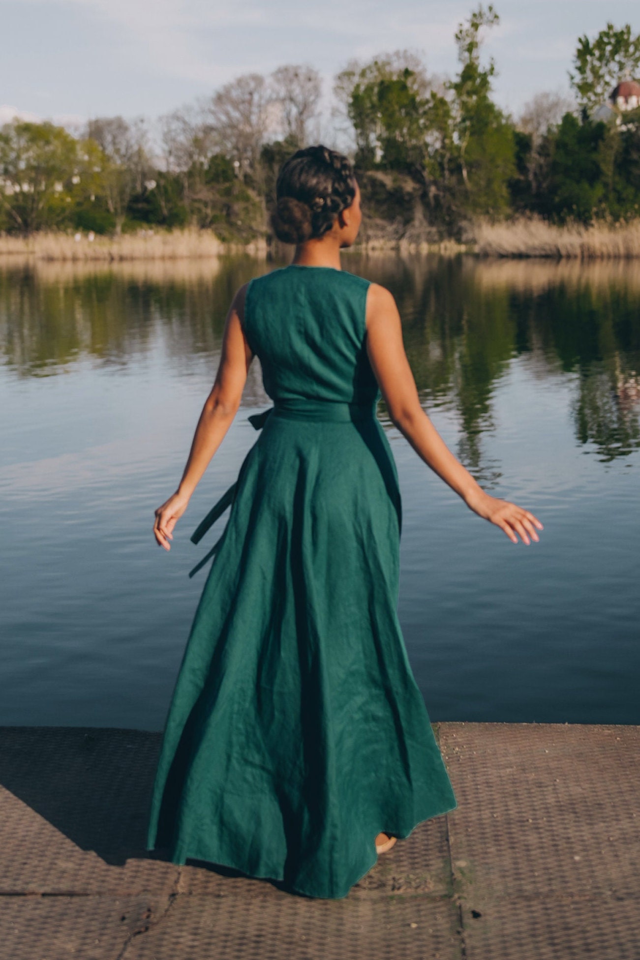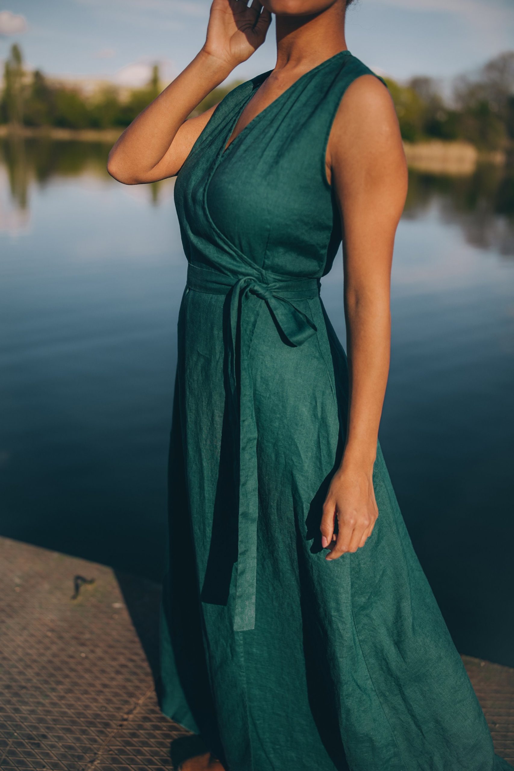 This sleeveless maxi linen wrap dress is the perfect blend of elegance and ease, designed for effortless wear in any season. Made from breathable, natural linen, it drapes beautifully, offering both comfort and sophistication.