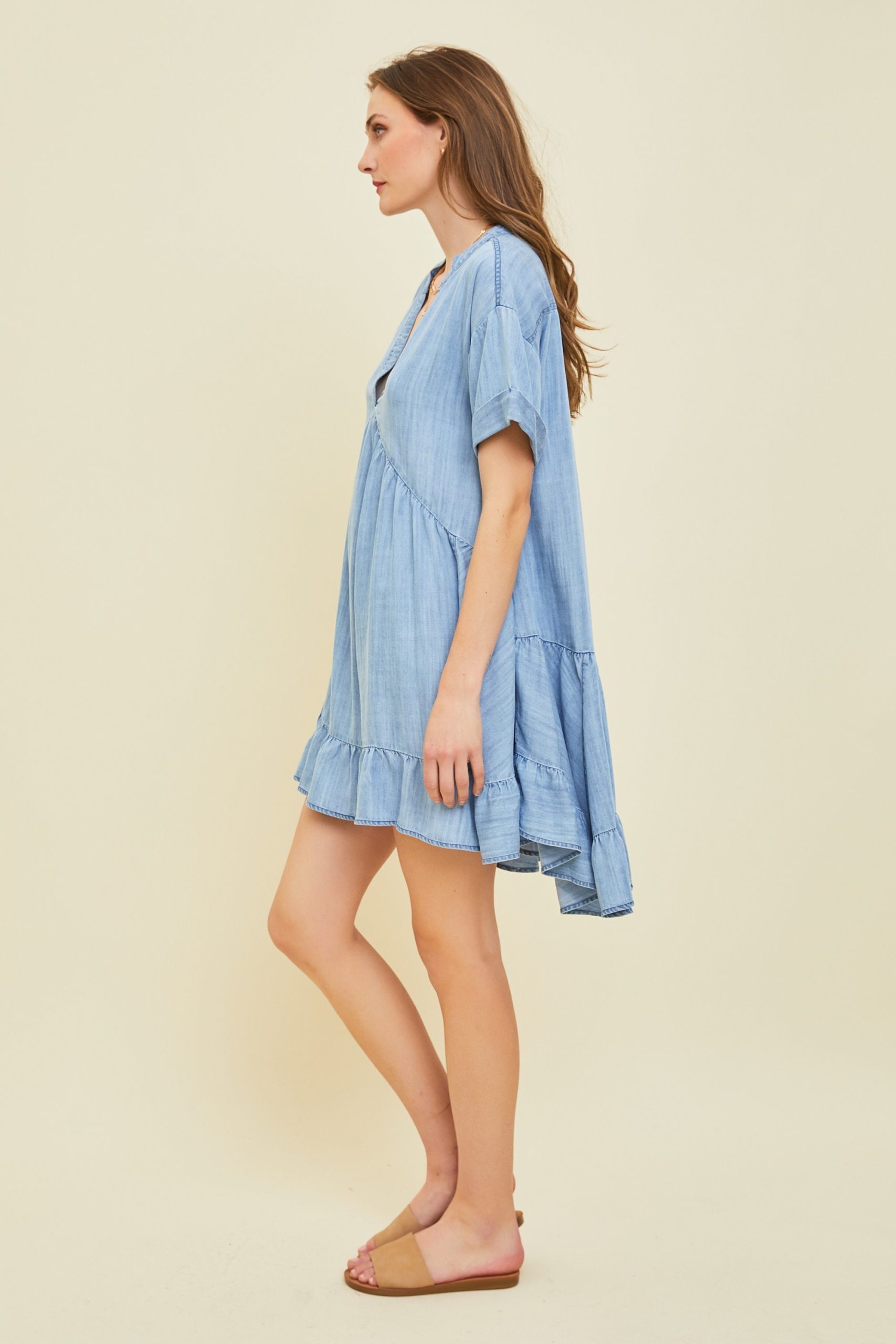 Be the first to review “Washed Denim Chambray Mini Dress Flowy A Line”