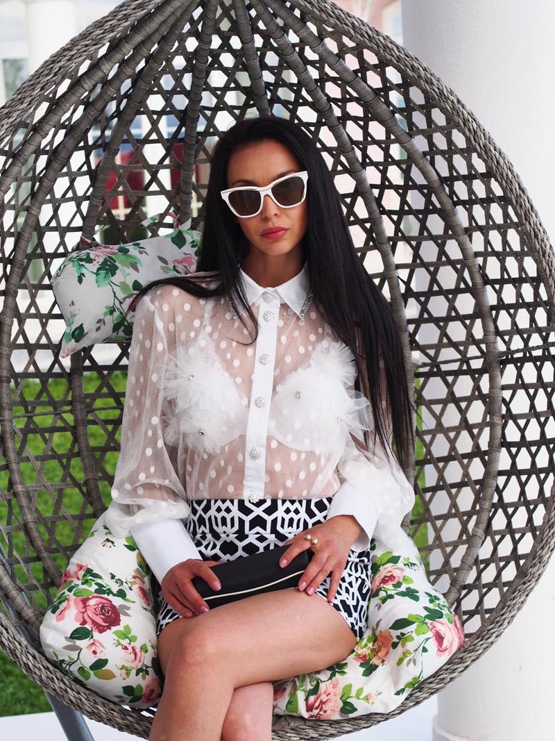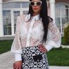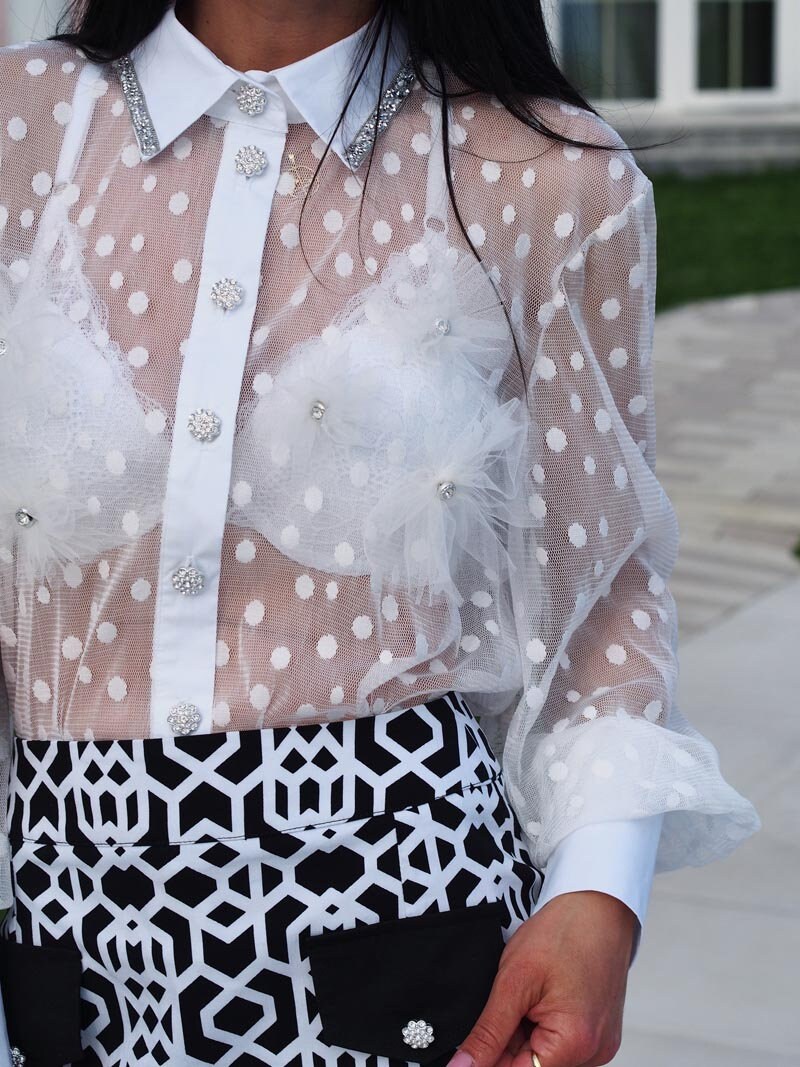 White Tulle Lace Shirt Women Extravagant Party Holiday