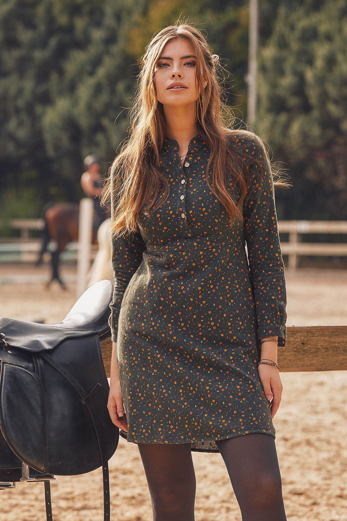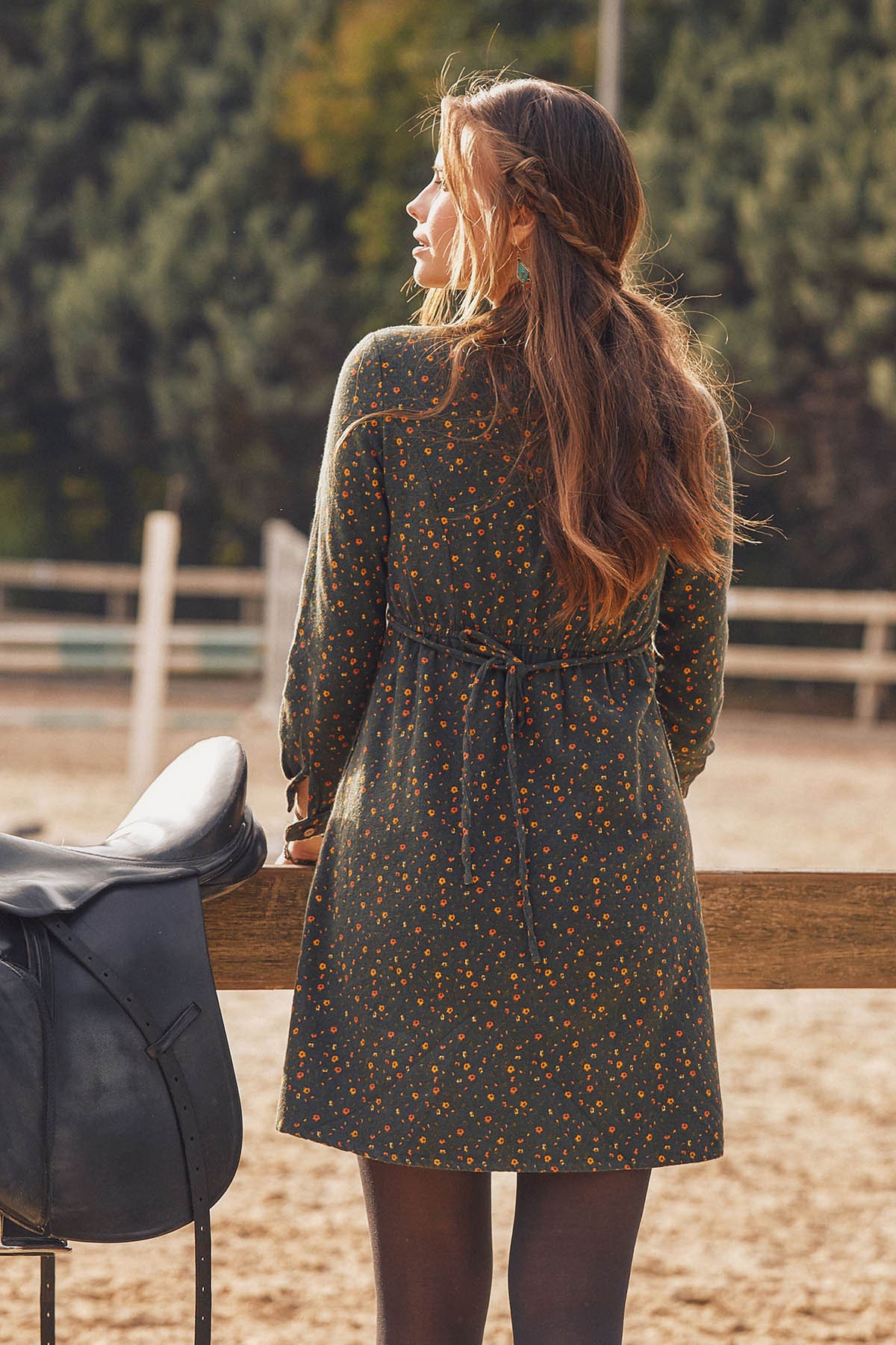 Wildflower Cotton Mini Dress Long Sleeve Bohemian Winter