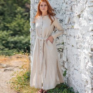 Linen Shirt Dress Button Down Long Sleeve Maxi